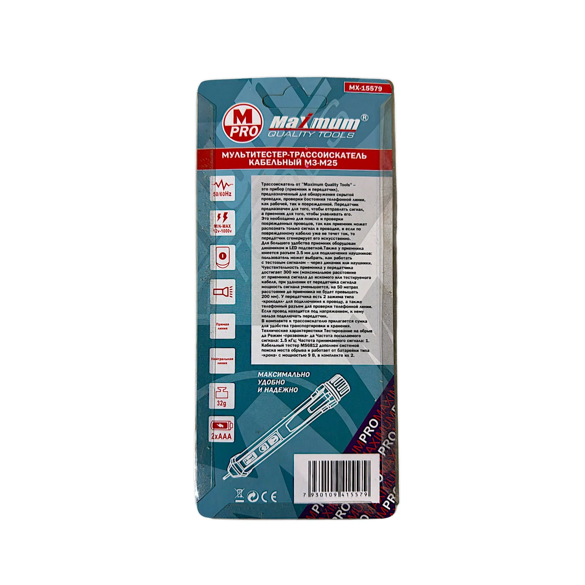Мультиметр-трассоискатель 50/60 Hz кабельный М3-М25, 12V-1000V, "MAXIMUM" MX 15579