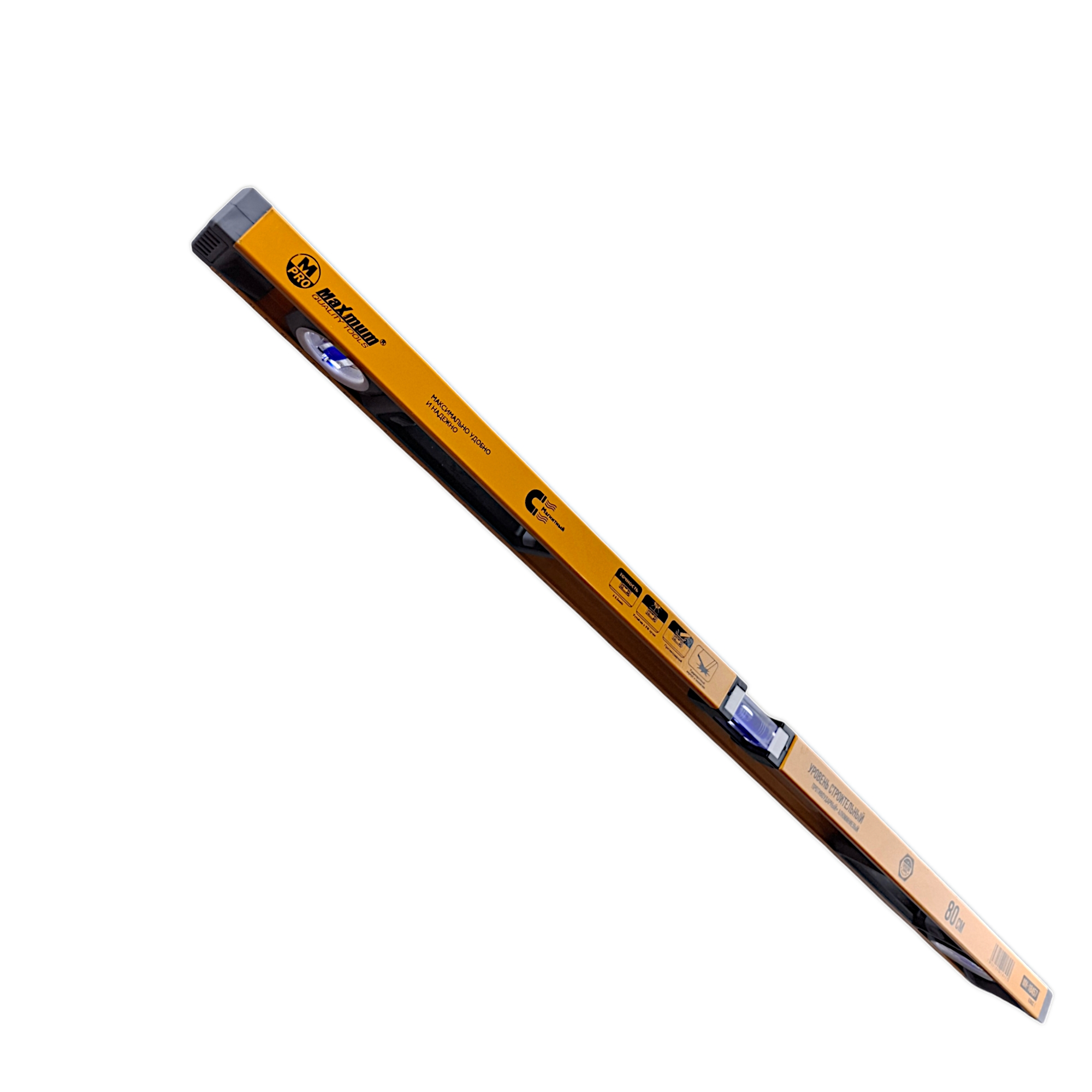 Уровень строительный 80 см магнитный, алюминиевый, противоударный, "MAXIMUM" MX 18457