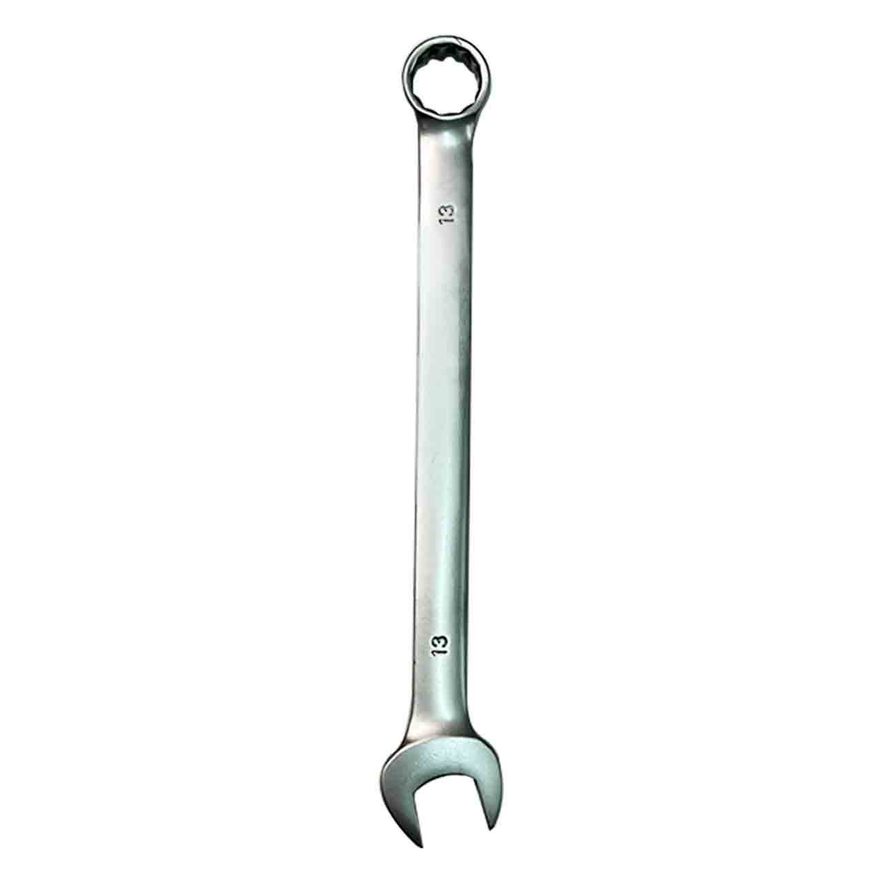 Ключ комбинированный 13 мм состоит из рожковой головки и накидного ключа. Головка рожкового ключа 13 мм наклонена на 15 градусов и используется при работе с крепежом в труднодоступных местах.