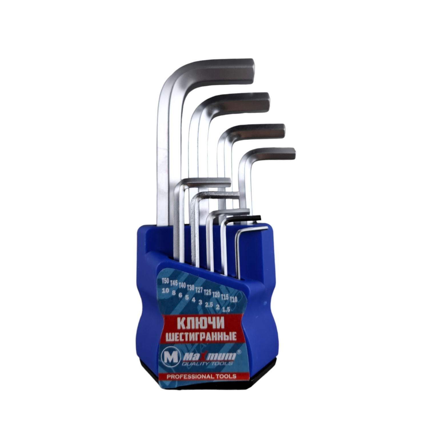 Набор шестигранных ключей HEX 120 мм от "Maximum Quality Tools" с размерами от 1,5 до 10 мм выполнен из прочного, износостойкого и неподверженного коррозии хромованадиевого сплава.