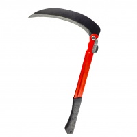 Коса складная безопасна при хранении и транспортировке, так как при необходимости лезвие одевается в специальный чехол и складывается внутрь рукояти. Эргономичная рукоятка 38 см с резиновым покрытием, удобно лежит в руке и не скользит. В ручке предусмотрено специальное отверстие для подвешивания.
