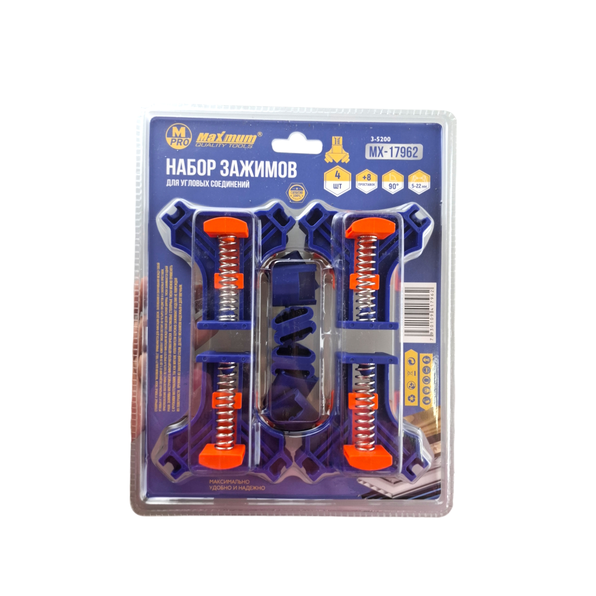 Набор зажимов для угловых соединений с запасными проставками 4 шт., 5-20 мм, 90 ⁰,"MAXIMUM" MX 17962