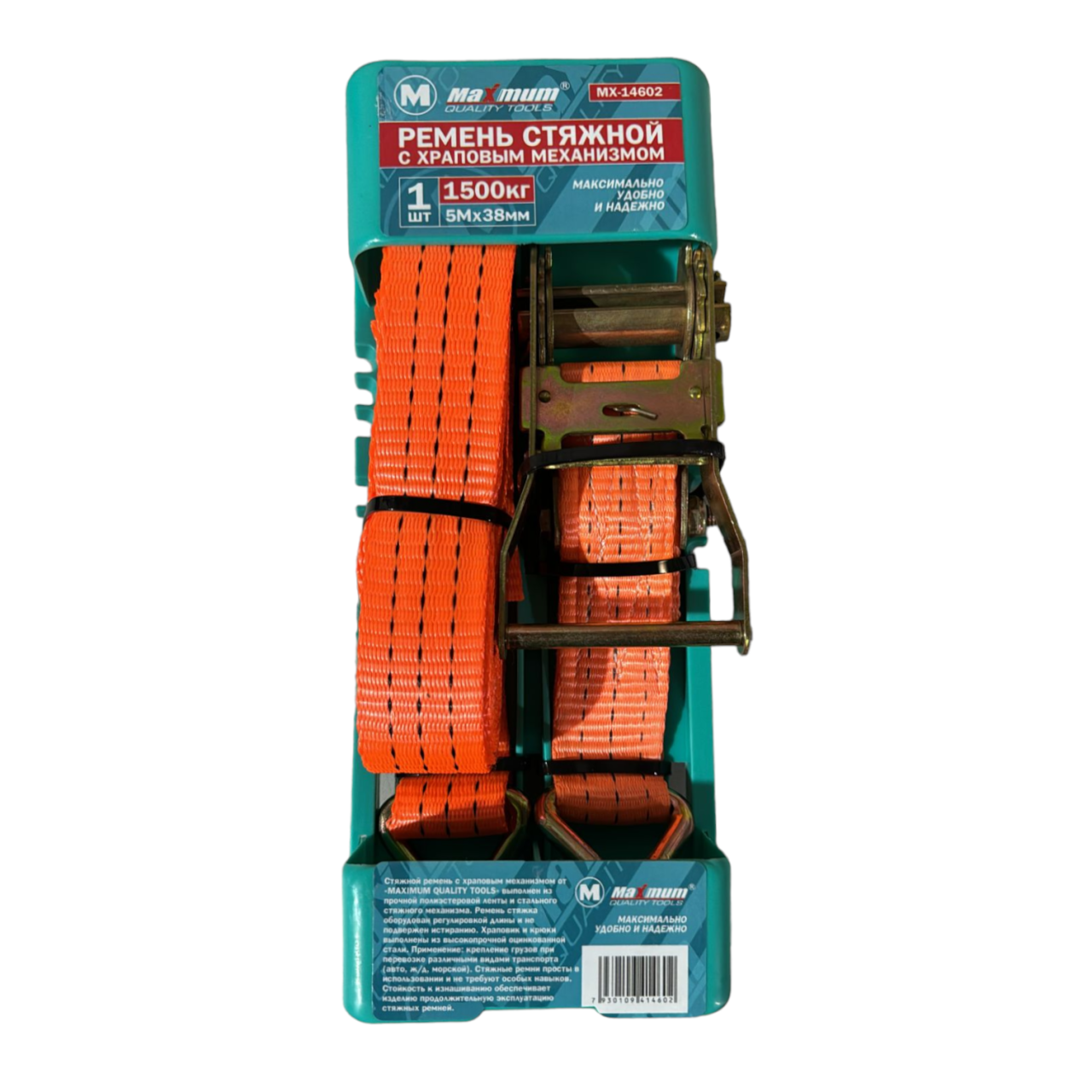 Ремень стяжной с храповым механизмом 1,5 тонны 5 м x 38 мм, 1шт., 303, "MAXIMUM" MX 14602