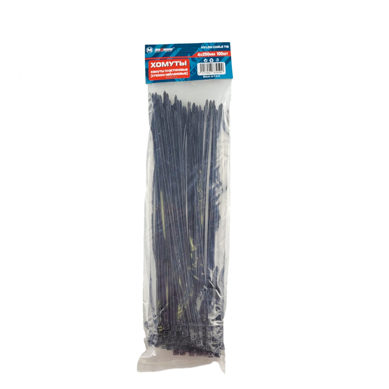 Хомуты нейлоновые 4x250 мм, черные, 100 шт, "MAXIMUM" (2619)