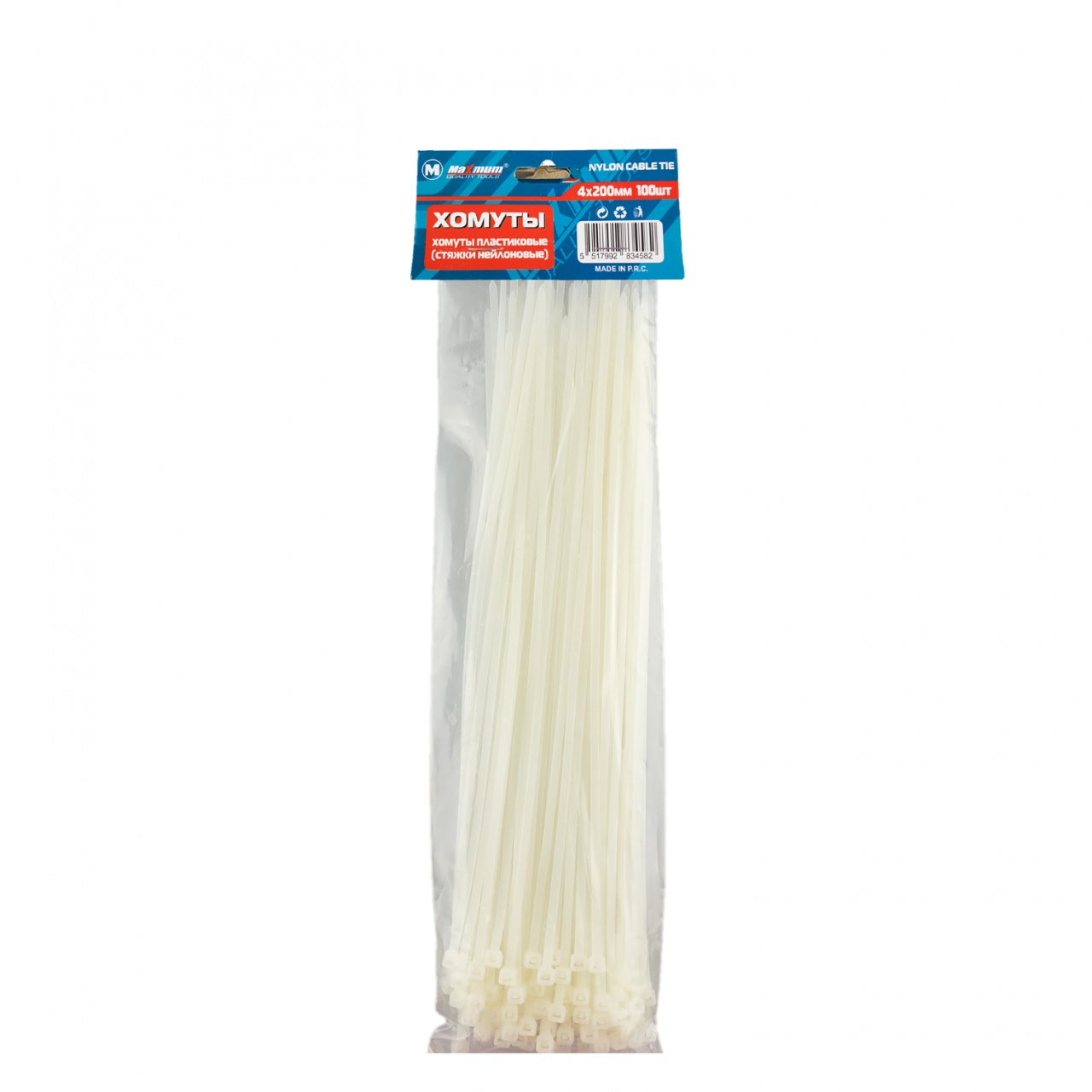 Хомуты нейлоновые 5x500 мм, 100 шт, белые, "MAXIMUM" (3284)