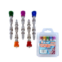 Важное отличие двухсторонней отвертки - ограничительный элемент, который выполнен в разных цветах, и позволяющий ускорить и облегчить работу по вкручиванию саморезов и подобных крепежных и резьбовых соединений в материалы типа ГЛК.