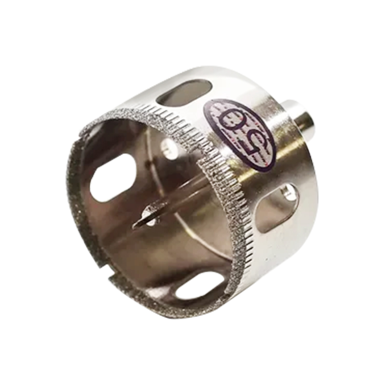 Кольцевая алмазная коронка 50 мм с центровочным сверлом предназначена создавать круглые ровные отверстия с высокой точностью. Корпус и сверло коронки выполнены из прочной нержавеющей стали.