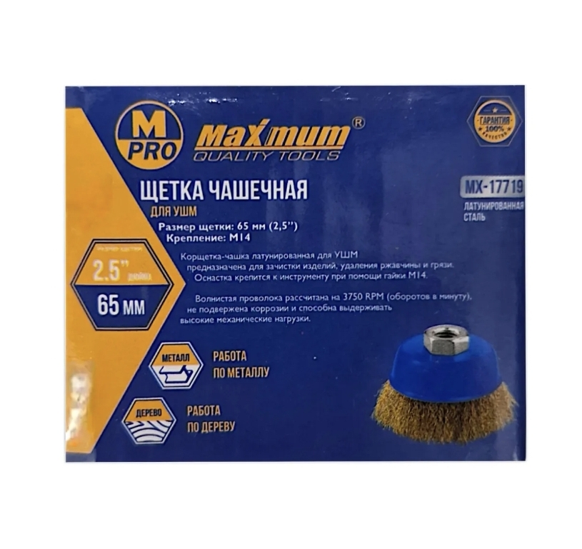 Щетка чашечная для УШМ 75 мм,3", витая,"Maximum" MX 17764