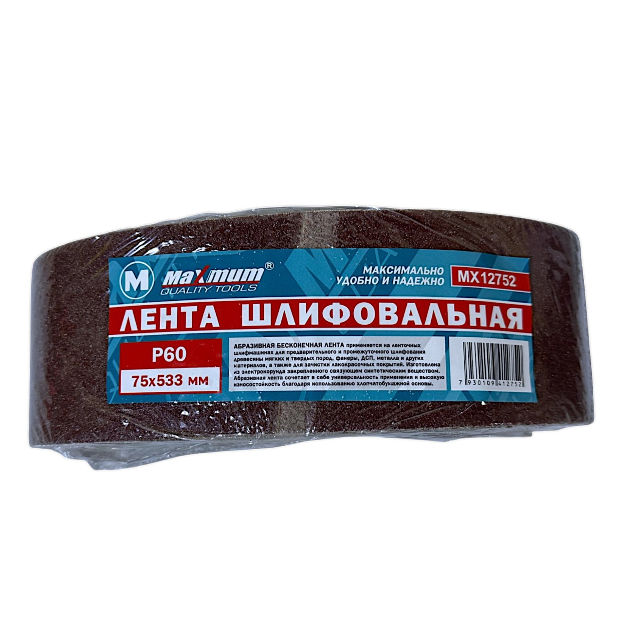 Лента шлифовальная 75x533 мм, P 60, "MAXIMUM" (кратно 10 шт) (2928)