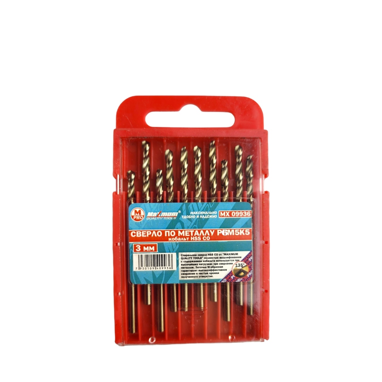 Сверла по металлу кобальтовые 3 мм, 10 шт., HSS CO, P6M5K5, "MAXIMUM" MX 09936