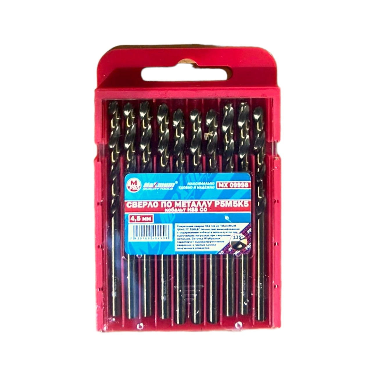 Сверла по металлу кобальтовые 4,5 мм, 10 шт., HSS CO, P6M5K5, "MAXIMUM" MX 09998
